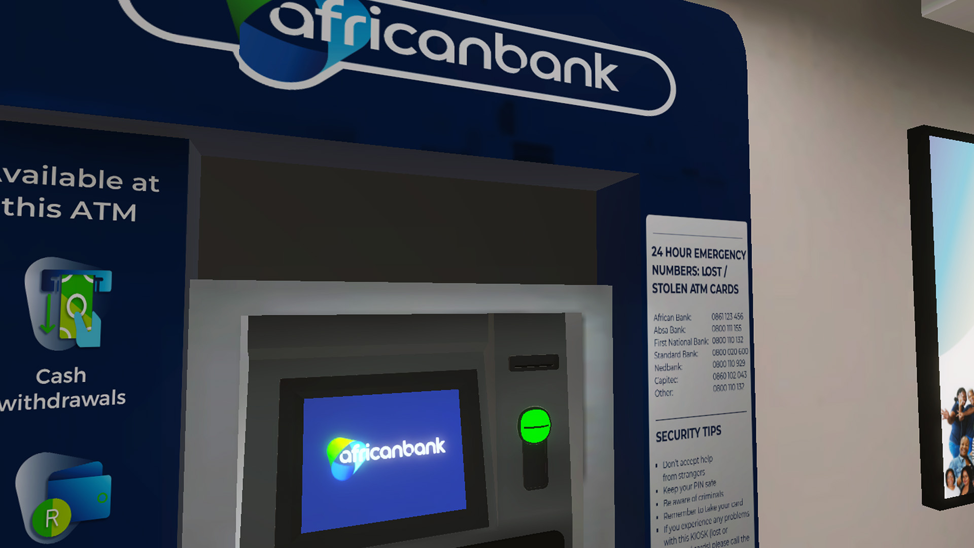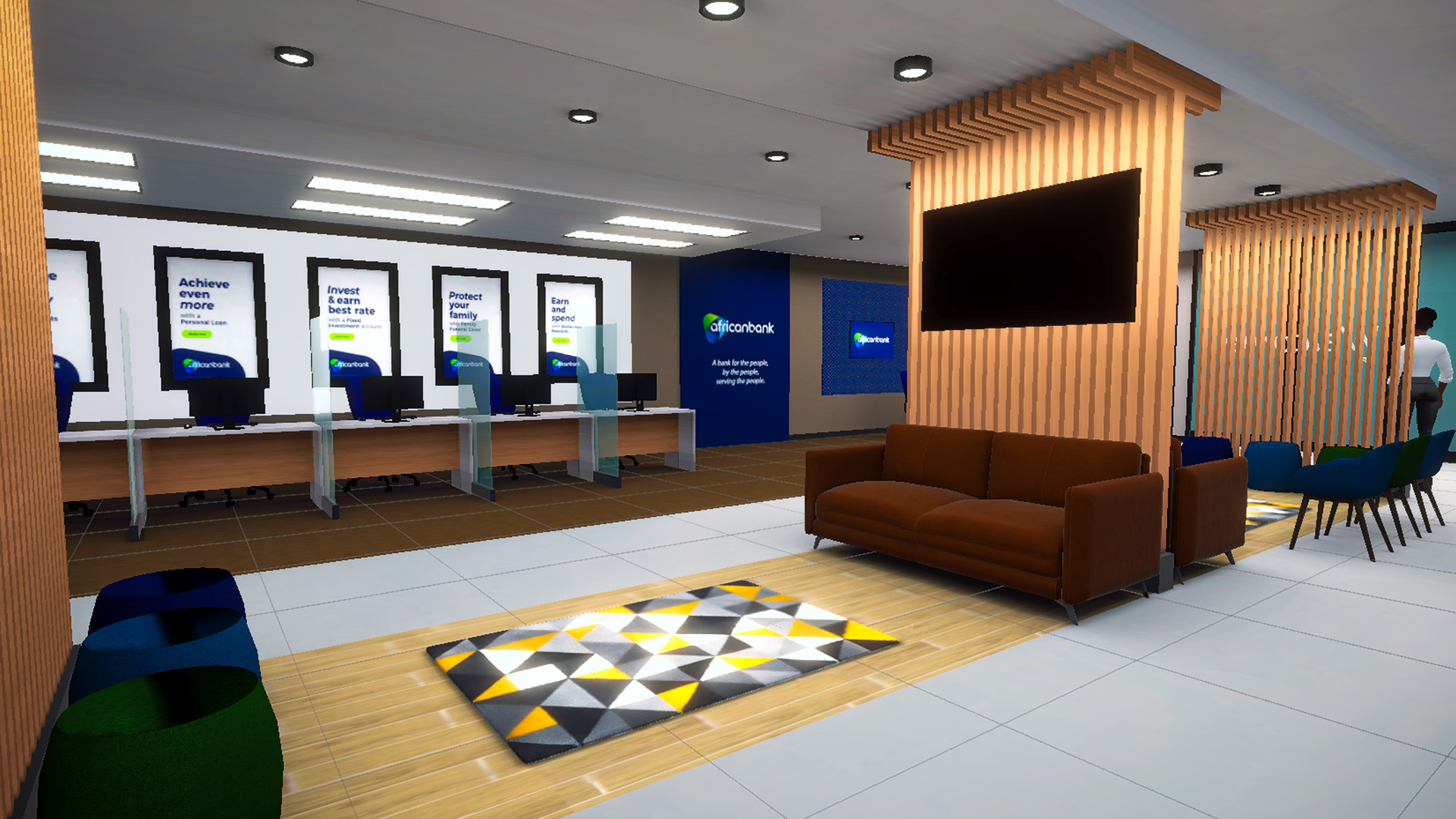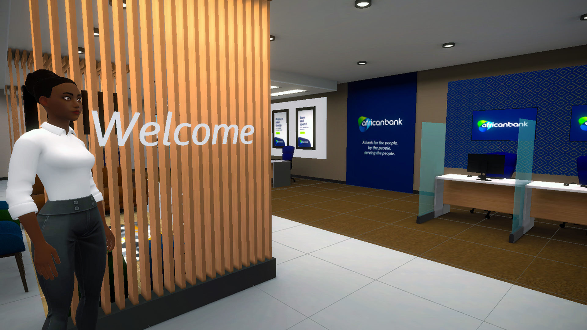 Beyond creating an authentic replica of a bank, VR offers a unique platform for education and promotion. Within this digital environment, African Bank has embedded a host of multimedia elements designed to inform and captivate users. Strategically placed posters, videos, and interactive kiosks serve as educational tools, offering a deep dive into the bank’s services and financial products.